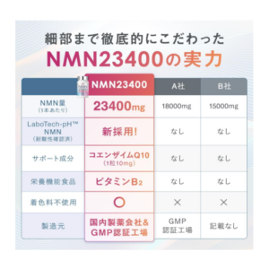 - High-Dose NMN (23,400mg per bottle) – One of the highest NMN concentrations in the industry. Each capsule contains 260mg of pure NMN.